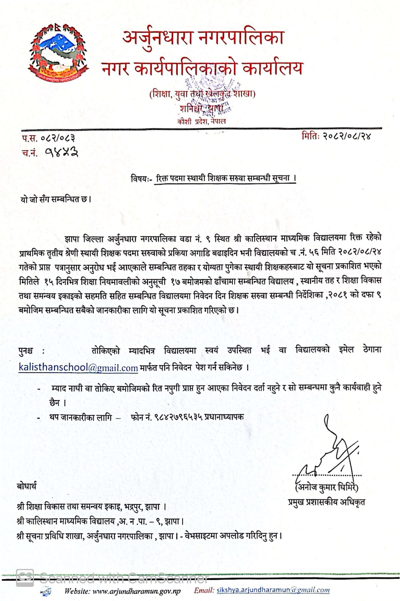 रीक्त पदमा स्थायी शिक्षक सरुवा सम्बन्धि सूचना