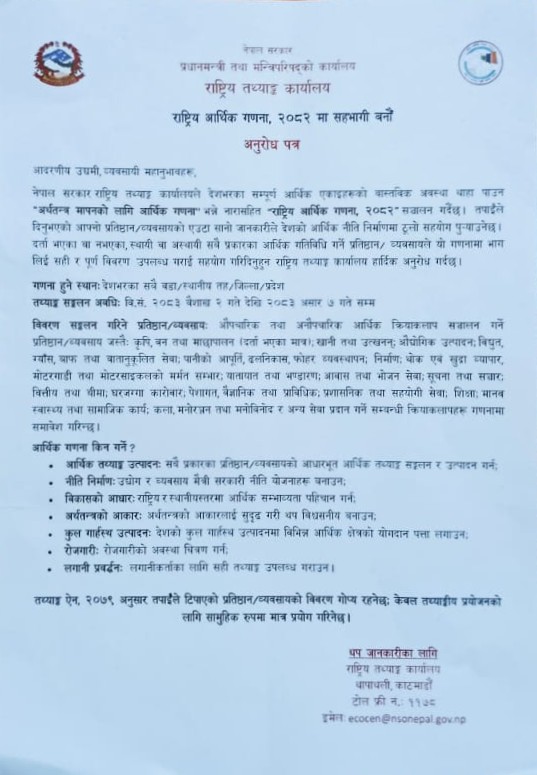 राष्ट्रीय आर्थिक गणना, २०८२ मा सहभागी बनौँ ।