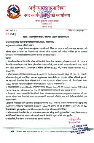 » आधारभूत तह कक्षा ८ परीक्षाको आवेदन फारम सम्बन्धमा ।