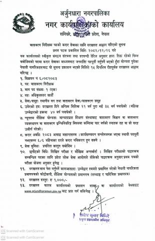 » वातावरण निरीक्षक पदको सेवा करारका लागि दरखास्त आह्वान गरिएको सूचना