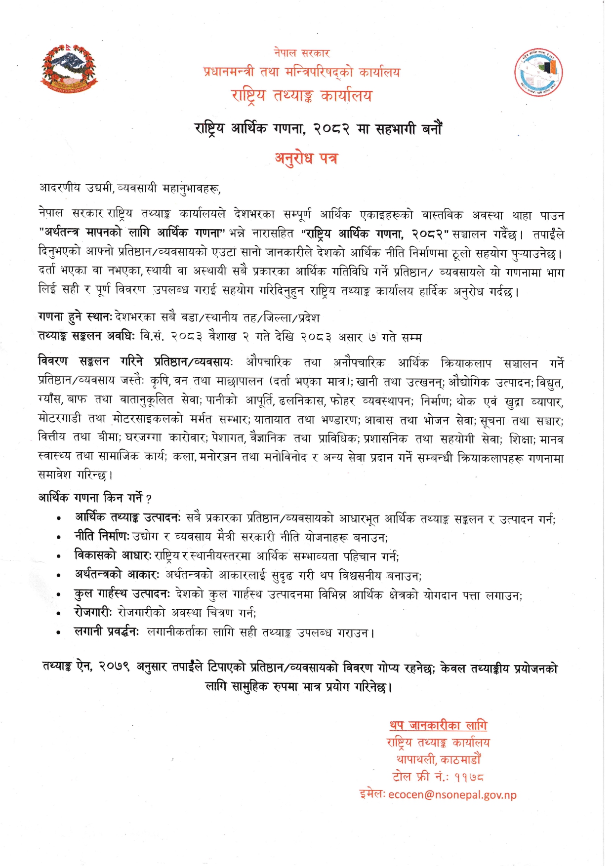 Let's participate in the National Economic Census, 2082.