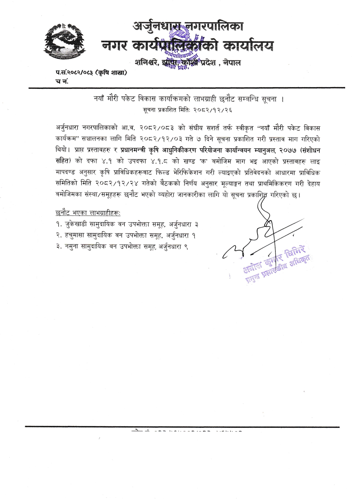 नयाँ मौरी पकेट विकास कार्याक्रमको लाभग्राही छनौट सम्बन्धि सूचना