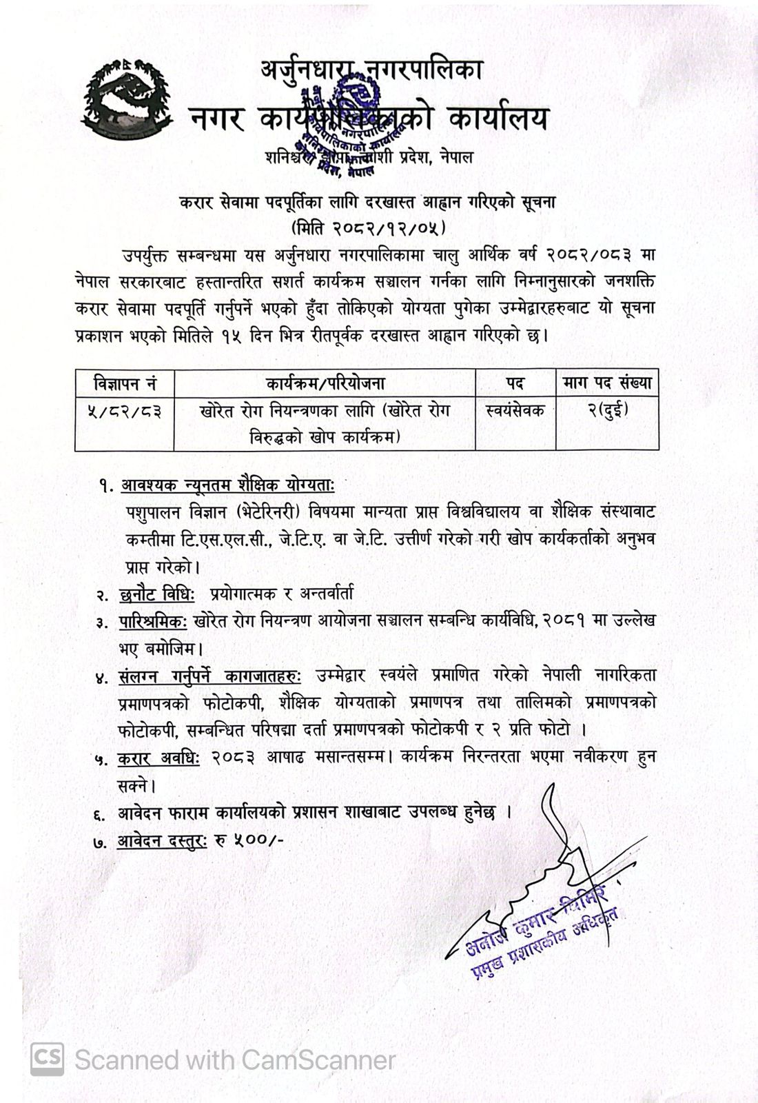 » करार सेवामा पदपूर्तिका लागि दरखास्त आह्वान गरिएको सूचना