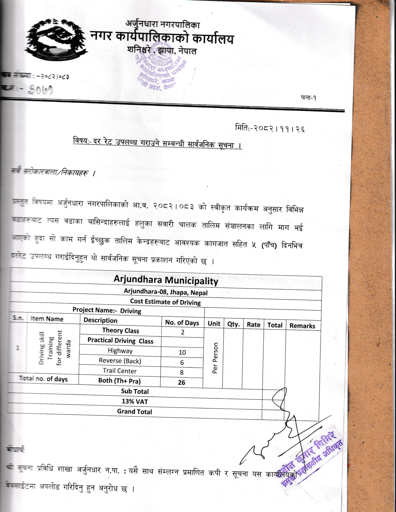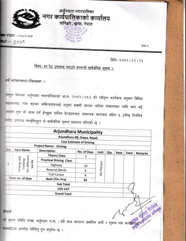 दर रेट उपलब्ध गराउने सम्बन्धी सार्वजनिक सूचना।